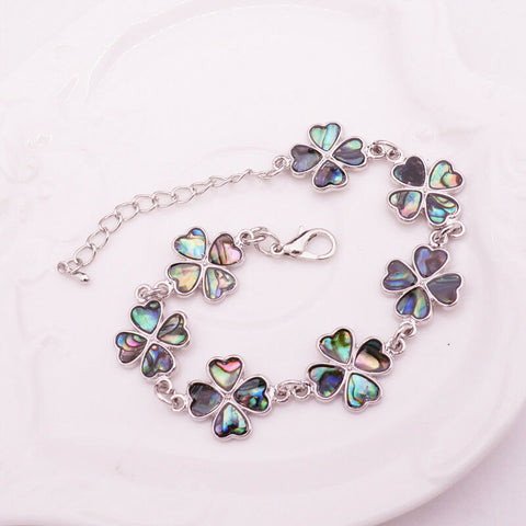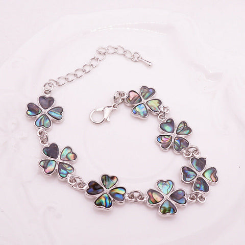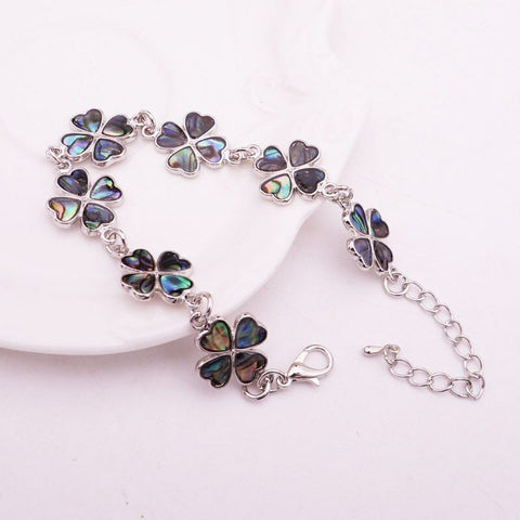 Alloy abalone four leaf clover bracelet 7 in plus 2 in extender