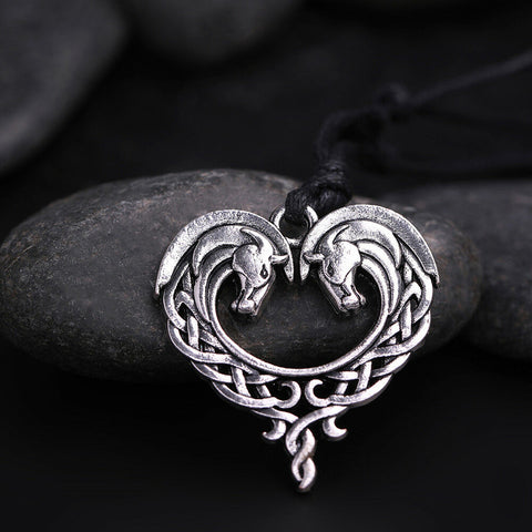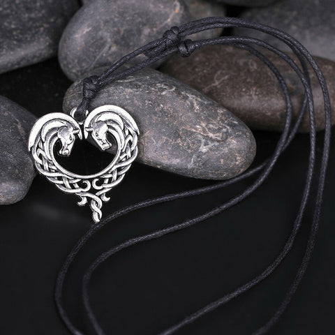 Double Sided Celtic Knots Horse Necklace with Full Length Adjusting Black Cord