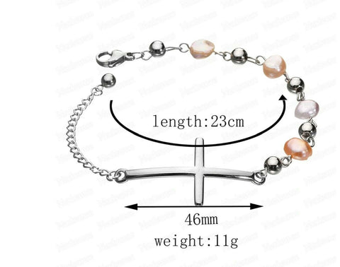 Genuine Fresh Water Pearl Stainless Steel Cross Bracelet adjusting 9 in length