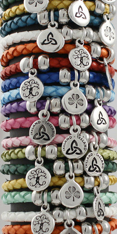 Irish Pewter Red Trinity Ireland Charm Leather Rounded Woven Adjustable Bracelet