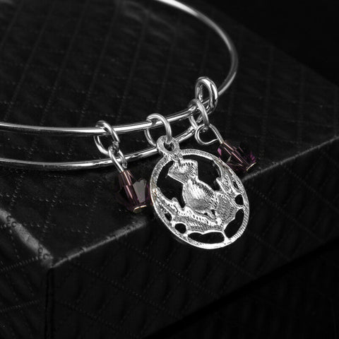 Scottish Thistle and two purple Beads and Expandable Bangle