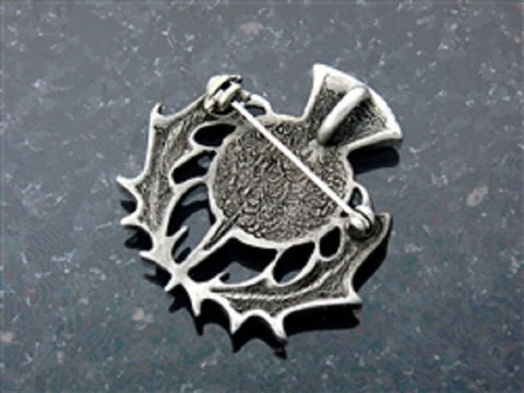This Scottish Thistle Pin is a both a pin and pendant. Wear it on your favorite black cord, sweater, or sash. The hand satin polished pewter gives this piece a look of the old.