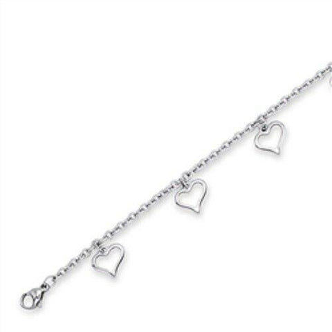 Stainless Steel 9.5 inch Charm Anklet with hearts with 2 in extender