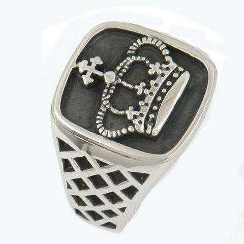 STAINLESS STEEL CHRIST CROSS CROWN RING