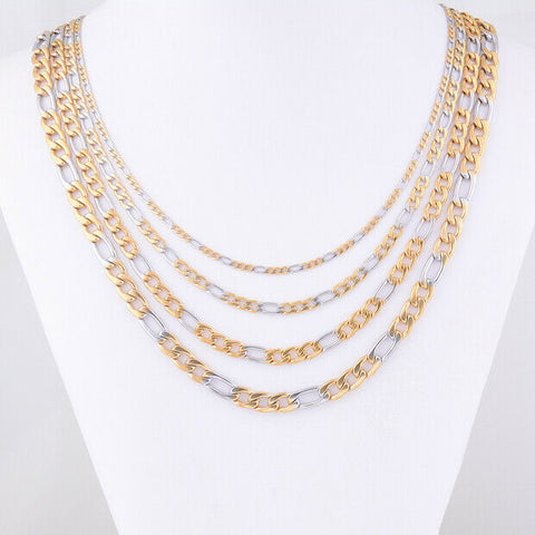 STAINLESS STEEL Gold and Silver Tone FIGARO CHAIN 24 in long 3mm wide