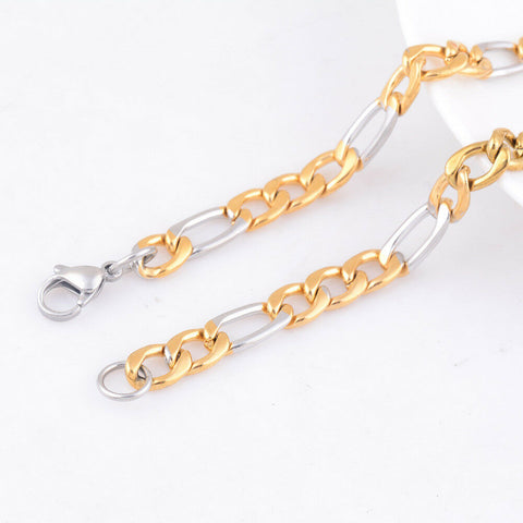 STAINLESS STEEL Gold and Silver Tone FIGARO CHAIN 26 in long 3mm wide
