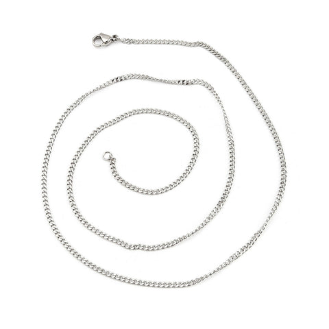 Stainless Steel Link Curb Chain Necklace Silver Tone 2.2 mm 60cm(23 5/8") long