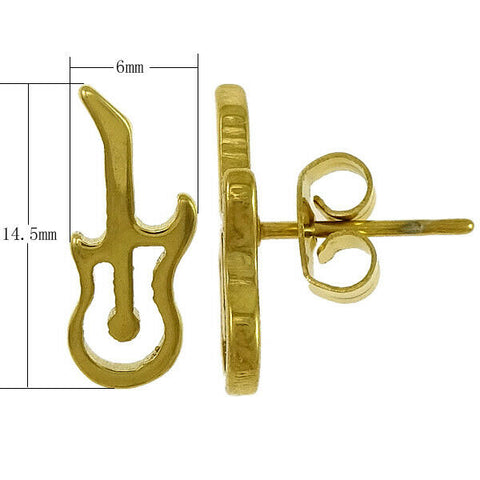 6 x 14.5 mm gold plated stainless steel guitar earrings