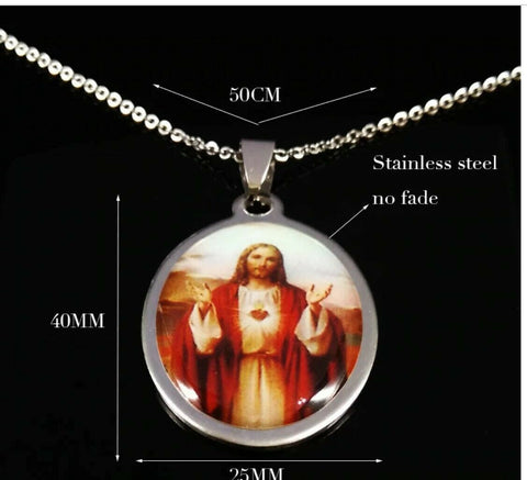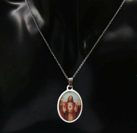 Stainless Steel Sacred Heart of Jesus Pendant and 20 in Chain