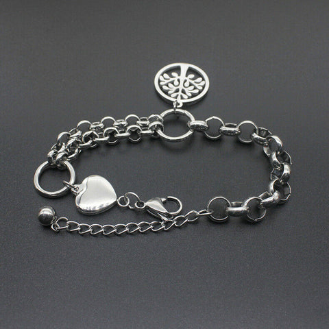 Stainless Steel tree of life bracelet with heart 18 cm ( 7 in) plus 2 in ext