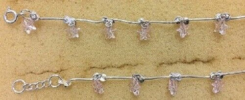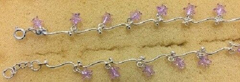 Sterling Silver Bead Anklet With Stars (Pink,Purple,Red)